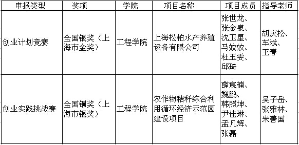 最终,英国威廉希尔公司官网选送的由胡庆松教师团队指导的《上海松柏水产养殖设备有限公司》与上海市其他高校选送的共36件作品推送参加“创青春”全国大学生创业计划竞赛,获得银奖。英国威廉希尔公司官网选送的由吴子岳教师团队指导的《农作物秸秆综合利用循环经济示范园建设项目》与上海市其他高校选送的共19件作品参加“创青春”全国大学生创业实践挑战赛,最终斩获铜奖。我校取得上海市高校总分排名第九的好成绩。