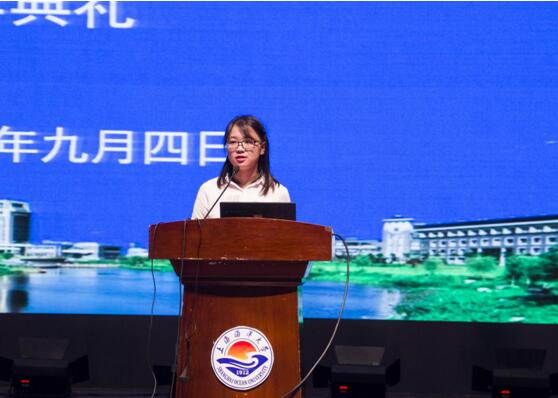 紧接着,2016级机制三班杨明月同学作为新生代表发言,她表示“大浪淘沙,经得过风浪考验的才是成功者;挥汗洒泪,抵得住烈日暴晒与意志考验的才是新时代的大学生”,并呼吁全体新生积极面对生活,坚决抵制诱惑,学习激励自我,全面锻炼自我。老生代表由原工程学生会主席、2013级电气二班的陶洁同学担任。她以自己优秀的大学经历为例,引出“这些都是别人的大学,那么你们呢”的话题,激励新生即便上了大学也不能放松,一样要拼搏努力,同时好好把握青春,不负光阴,乘风破浪!