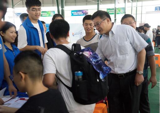 金秋送爽喜迎八方学子,丹桂飘香共祝美好明天。9月9日,我院迎新志愿者在风雨操场欢迎报到新生,校长程裕东、院党委书记王明华、党委副书记郑宇钧来到迎新现场进行慰问。