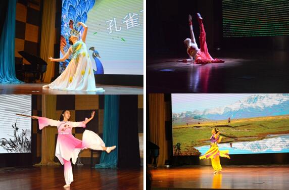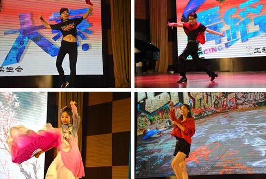 开场曲目堂堂乐队的吉他,架子鼓表演潮气蓬勃,引燃现场气氛。紧接首先进行的是舞蹈大赛的首轮赛段,林珊珊的爵士舞《小黑衣》动感迷人,少数民族姑娘迪丽胡玛的新疆舞淋漓尽致,屠孟悦仿佛化身成为一只美丽的孔雀在舞台中央展现着曼妙的舞姿。作为台上唯一的男选手,李智鑫身着黑色舞蹈服给观众带来一曲《Durning》,刚柔共济,点燃了大赛的高潮。陈旭涵独特的民族舞蹈,节奏明快,热情奔放,别有一番风情。