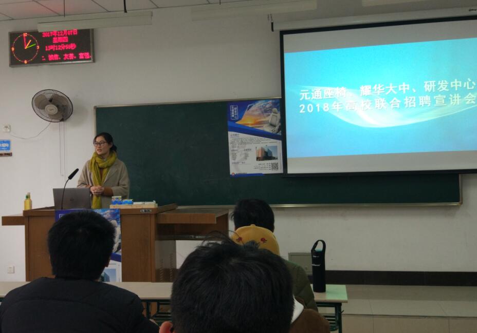 2017年12月7日下午13:00,英国威廉希尔公司官网在2105教室举行了上海元通座椅系统有限公司宣讲会。上海元通座椅系统有限公司人事经理沈伟萍、英国威廉希尔公司官网辅导员李陆嫔以及毕业班部分学生等参加了宣讲会。