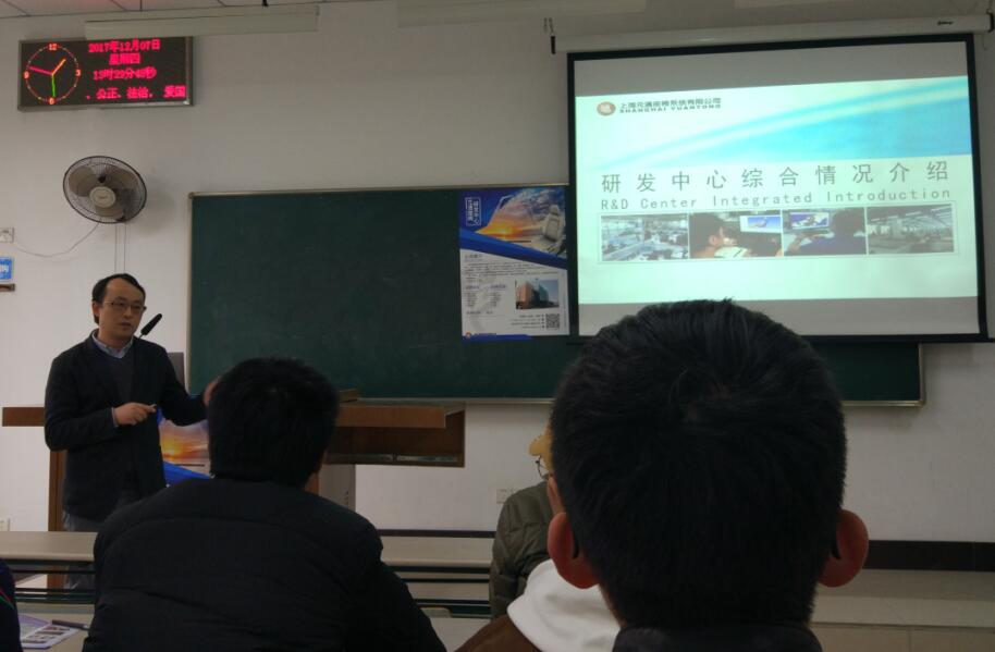 宣讲会上,上海元通座椅系统有限公司人事部经理沈伟萍向同学们介绍了公司的发展历程、企业文化、产品特色、合作企业以及发展现状等,使同学们对公司有了初步的了解。接着,技术部经理向同学们介绍了企业的招聘岗位,就设计工程师、电气工程师、测试工程师、有限元工程师、工艺工程师和设备工程师的岗位职责和要求进行了具体的介绍,使同学们对应聘岗位需求有了进一步的了解。介绍过程中,沈经理着重强调了公司的理念与企业文化,注重培养创新型人才。
