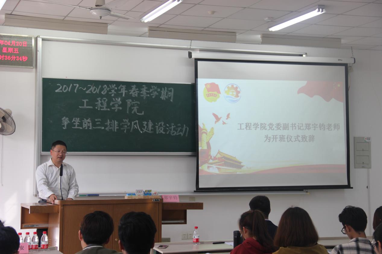 4月20日下午15时30分,本期学生骨干培训开班仪式于 1104教室举行,院党委副书记郑宇钧为开班仪式致辞,郑宇钧老师指出,团学工作是对青年学生进行思想引领的主要渠道,是学生工作中至关重要的一环,希望同学们能够认真学习理论知识,努力提高思想政策理论水平、实践能力和组织协调能力,在日后的生活中能够起到表率作用和模范带头作用,同时预祝此次培养计划的顺利开展。
