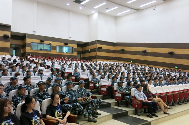最后,郑宇钧副书记结合2018版《学生管理服务手册》对新生开展入学教育,内容主要就学生学分修读、违纪处理、奖学金、助学金、转专业、留学游学以及学生心理健康、入党启蒙、征兵工作、安全教育方面做了详细报告,告诫新生“积跬步以至千里,积怠惰以致深渊”,希望新生珍惜大学时光,学有所成!