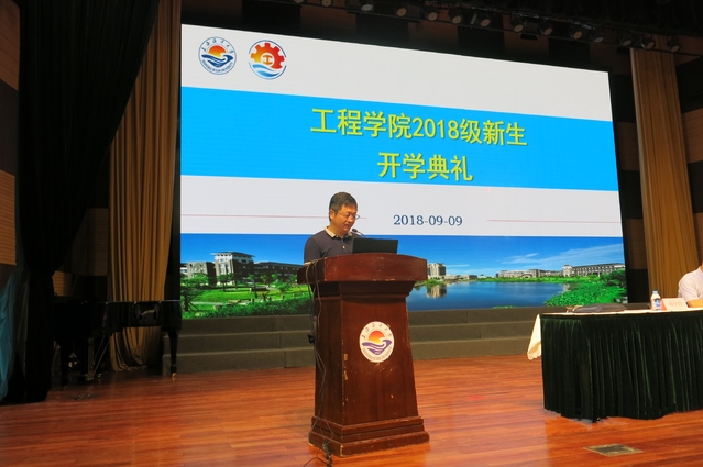 本次大会由院党委副书记郑宇钧主持,其首先对2018级313名本科新生及65名研究生新生表示热烈欢迎,并对参与迎新工作的班助、志愿者及各位辅导员表示感谢。随后,王世明院长就学院专业概况、师资力量、教学设备、学生学习内容等基本情况做了简单的介绍,帮助新生对学院和专业有更清晰的了解,以便其对大学四年有一个初步的规划,同时王院长寄语新生“常怀感恩之心,夯实专业基础,积极参加学科竞赛和创新创业活动,脚踏实地,砥砺前行”。