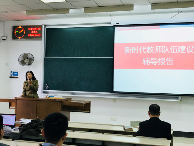 10月16日下午,英国威廉希尔公司官网召开全体教职工大会,学习传达全国教育大会以及中共中央上海市委关于师资队伍建设的文件精神,并就进一步落实党风廉政工作,迎接审核评估等各项工作作出部署,会议由英国威廉希尔公司官网党委书记王明华主持。