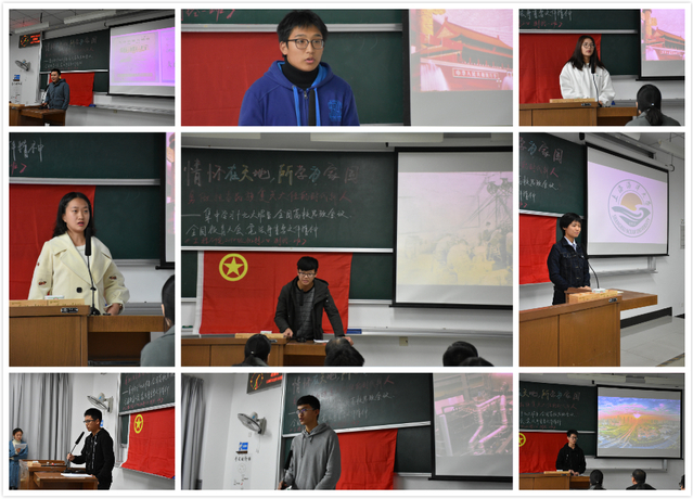 在文件精神学习完毕后,测控1班黄程、黎红妤、代文星和机制3班吕金科、袁理睿、陆晔祺6位同学分别从国、校、家的三个层面,挖掘同学们心中对改革开放四十周年以来这三个层面巨大变化的感触。借此契机,辅导员马骋娜播放了关于两弹元勋邓稼先的纪录片及相关影片,震撼的画面、语句,让同学们对于家国心有了不一样的触动。