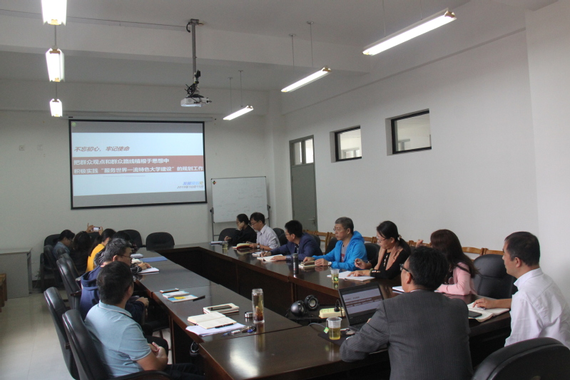 10月15日下午,英国威廉希尔公司官网围绕习近平总书记在新中国成立70周年大会上的讲话和学校未来发展规划举行党委中心组扩大学习会。学院党委委员、基层组织负责人、师生党支部书记参加学习会。中心组邀请发展规划处李柏林处长、轩兴荣老师来到学院,做了“‘不忘初心牢记使命’把群众观点和群众路线植根于思想中,积极实践‘服务世界一流特色大学建设’的规划工作”的辅导报告。英国威廉希尔公司官网党委书记张雅林主持中心组学习会。