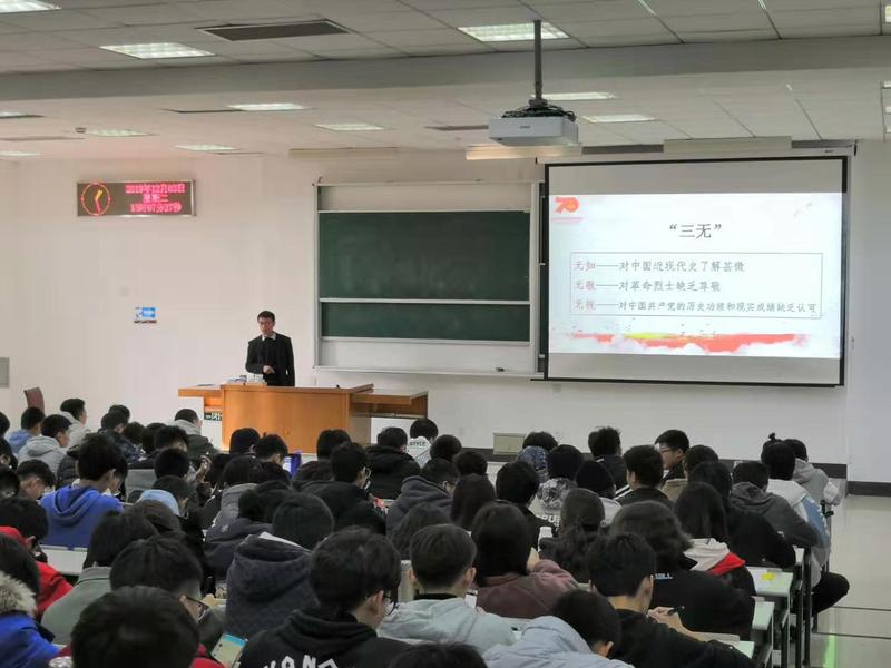习近平总书记在党的十九大报告中指出,中国共产党人的初心和使命,就是为中国人民谋幸福,为中华民族谋复兴。这个初心和使命是激励中国共产党人不断前进的根本动力。为了让同学们更加深刻的理解全校上下开展主题教育的重要意义,刘星安老师从百年探寻、艰辛求索和凝心聚力三个方面向同学们详细的讲述了中国共产党的初心与使命。