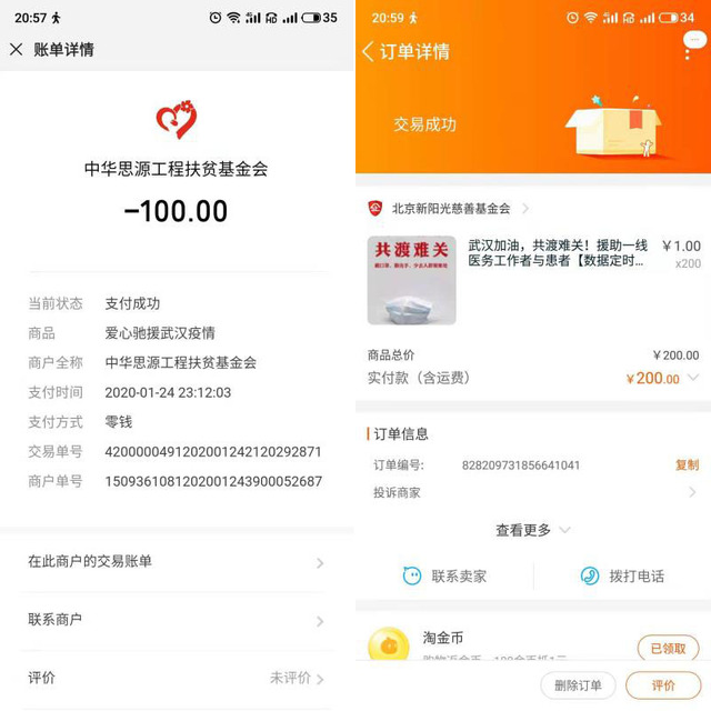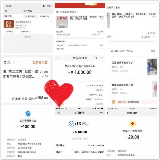 面对疫情,英国威廉希尔公司官网学子们纷纷捐款捐物。怀揣着对广大受灾人民的担忧与对前线工作者的崇高敬意,通过各种途径进行捐款。有些通过网上的爱心协会捐款,有些将款项送去基金会或社区居委会进行捐赠,本研学子总计面向社会捐款8580.97元。其中2017工业1班的王俞超同学通过阿里巴巴“武汉加油”公益项目捐款2000元,2017机制1班的潘俊宇同学通过韩红爱心慈善基金会捐款1000元,2018机制4班的曾令富同学通过湖北省慈善总会捐款1000元,2018机制3班的邢运瑜同学通过武汉市慈善总会捐款500元。
