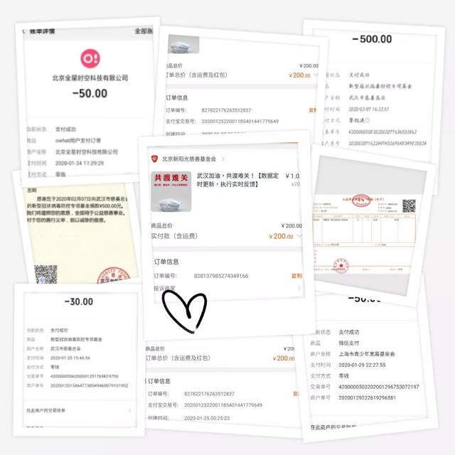 也有一些工程学子通过物资捐赠,帮助湖北缓解物资压力。其中2019电气1班的马寒冰同学捐赠酒精1箱、口罩1箱;2018机制4班的凌泽宇同学捐赠医用口罩100个;2016机制1班的叶诗韵同学通过网络众筹为湖北省襄阳市中医院捐赠若干医用一次性手套;2017物工2班的张倩逸同学通过北京新阳光慈善基金会为武汉捐赠医用口罩20个。还有些同学发动了家里的亲戚朋友一同奉献自己的一份力量……小流汇成大海,爱心传递武汉,病毒可以隔离,但爱心并不会被隔离。他们相信:只要每个“渺小”的我们都付出自己的一点点力,自觉隔离,做好防护,我们终将战胜这场没有硝烟的战争,我们虽不能奔赴前线,但只要我们一起携手同心,我们的国家一定能战胜所有困难。即便2020的开头令人沮丧,但只要生命不息,即使重遭天灾人祸,暂被阻抑,终有抬头的日子。
