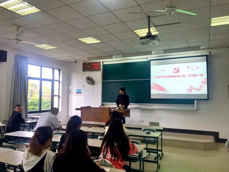 下一任党支部书记主翔宇为大家详细讲述了部分《习近平谈治国理政》第三卷。党员同志们都积极响应学习,认真领悟精神,大家都表示将会切实增强学习的自觉性和坚定性,切实将党的创新理论转化为实践伟力,当先锋、做表率。同时,刘莹莹同志上台做了关于《习近平谈治国理政》第三卷的发言。
