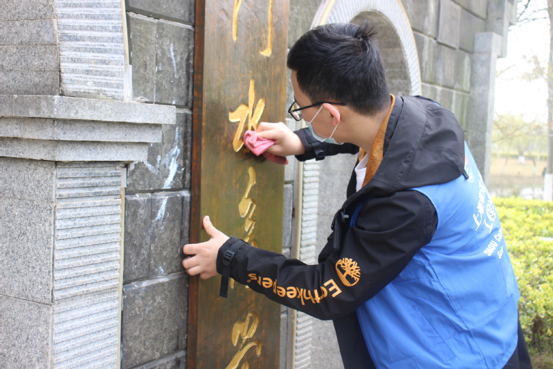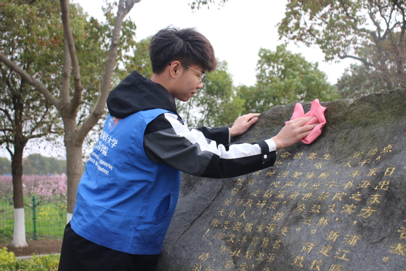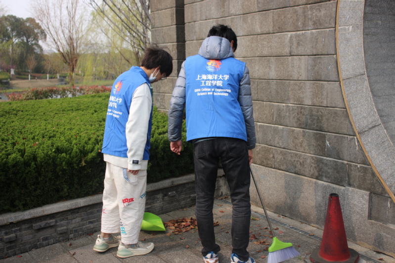 志愿者分为两个批次,其中一部分志愿者负责清扫前四个校牌和附近雕塑,另一部分则负责清扫后三个校牌和周边雕塑,打扫了“江苏省立水产学校”“国立中央大学农学院水产学校”“上海市吴淞水产专科学校”“上海水产学院”“厦门水产学院”“上海水产大学”“英国威廉希尔公司官网”等七个校牌,以及《饮水思源》、《元鼎骨》等八个雕塑。在志愿者们的辛勤劳动下,朝海路更加干净整洁,更加焕然一新。