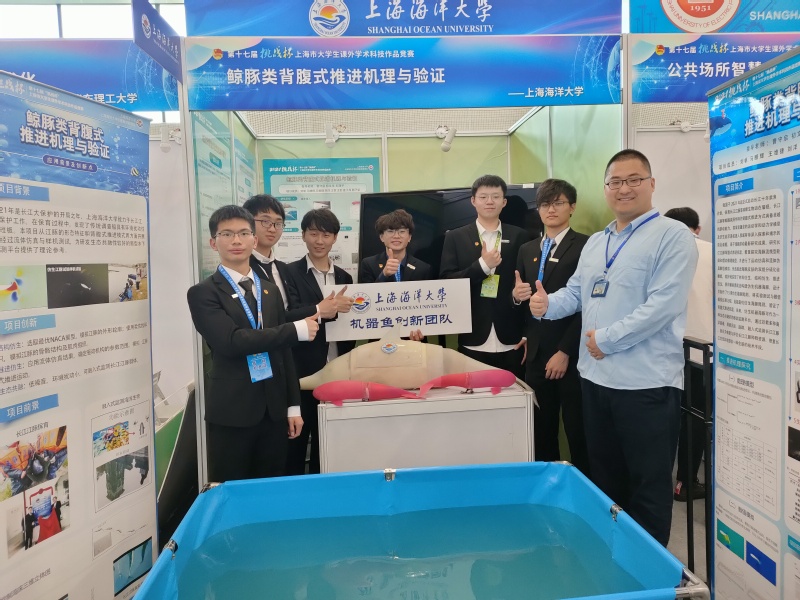 2021年5月10日下午,第十七届“挑战杯”上海市大学生课外学术科技作品竞赛颁奖式暨优秀作品展示会举行。我院由曹守启、初文华、主翔宇三位老师指导;刘帆、马赜辉、王维捷、刘洋、王贺、王勃、姜子昂、郭子晏等八位同学共同完成的项目《鲸豚类背腹式推进机理与验证》获第十七届“挑战杯”上海市赛一等奖;由张铮老师指导;泰泓、吴雨桐、周盈盈、潘文涛、代文星、石海川、刘冠辰等七位同学共同完成的项目《授之以“渔”-智慧渔业养殖助推乡村振兴》获第十七届“挑战杯”上海市赛二等奖。