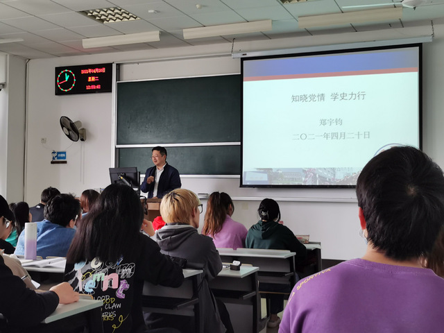 4月20日下午,郑宇钧老师以“知晓党情,学史力行”为主题,着重讲述了当前党建工作背景和习近平治国理政思路,归纳总结了新时代坚持和发展什么样的中国特色社会主义,怎样坚持和发展中国特色社会主义这个重大问题,引用习近平主席在全国党校工作会议上的讲话,向同学们介绍了习近平总书记的治国理念。