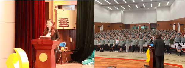 校友代表邵娇云从自身经历出发,希望学弟学妹们制定合理目标并为之而奋斗、培养面对挫折的勇气、坚持合理的运动,尽快适应大学生活并遇见更好的自己。华为徐丽婷经理从华为的标语“我们致力于把数字世界带入每个人、每个家庭、每个组织,构建万物互联的智能世界”开始,介绍了工业信息的未来趋势以及ICT人才培养体系,给现场新生以极大震撼。