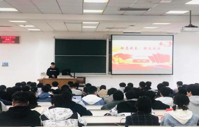 陈帅学长结合自身校园学习、参军入伍、工作经历三个方面与现场同学们进行了分享。陈帅鼓励号召同学们在校期间认真学习,打牢专业基础;在条件允许的情况下,应当积极参军报国。在课堂上,陈帅不仅给同学们分享了一些工作时的趣事及经验,还与同学们一起探讨和交流新生应当怎样适应大学生活,给予同学们如何处理好学习、工作及生活问题提供了建设性意见。