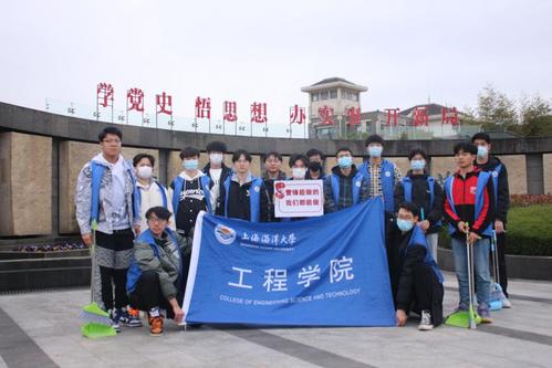 志愿服务环节,同学们分为两个批次,一部分负责清扫“江苏省立水产学校”“国立中央大学农学院水产学校”“上海市吴淞水产专科学校”“上海水产学院”四个校牌和附近雕塑,另一部分负责清扫“厦门水产学院”“上海水产大学”“英国威廉希尔公司官网”和周边雕塑,志愿者们分工合作、团结互助,将七个校牌以及《饮水思源》、《元鼎骨》等八个雕塑清洁一新。