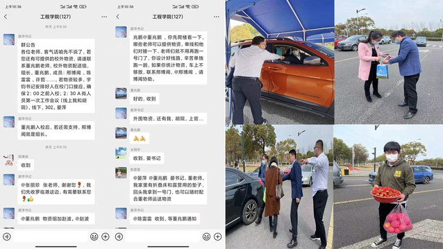 3月13日一大清早,学校1号门门口已经来了很多前来支援防疫物资的工程老师,学院党委书记晏萍、院长胡庆松、党委副书记郑宇钧、副院长许竞翔连夜做好支援物资接送安排,并一早来到校门口进行现场协调,与学院师生一起做好物资接力,为大家加油打气。只见老师们送来了折叠床、床垫、被褥等住宿用品,也有老师们送来了储备粮,为参与志愿服务的老师买来了草莓苹果。一份份物资、一份份温暖,都饱含着工程人的爱意,彰显着工程人的凝聚力。也让清晨的海大1号门,散发着别样的光影。