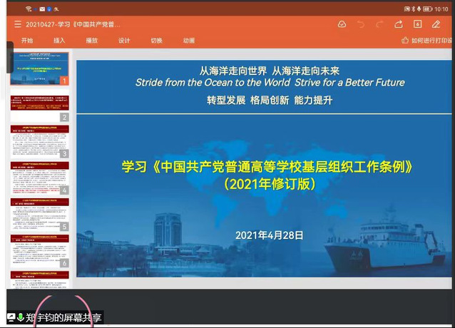 党委副书记郑宇钧带领与会人员进行专题学习《中国共产党普通高等学校基层组织工作条例》,他指出,《条例》的修订坚持以习近平新时代中国特色社会主义思想为指导,坚持以党章为根本依据,贯彻落实新时代党的建设总要求和新时代党的组织路线,对高校基层党组织工作作出全面规范,体现了近年来高校党建工作理论、实践和制度创新成果,为全面加强新时代高校党的建设提供了基本遵循。对照《条例》要求,张俊和成国庆老师分别就“双带头人”教师党支部书记工作室验收和中期评估进行汇报,支部间通过工作成果交流,相互借鉴经验,推动党建工作与业务互促共进同向发力。学院专职组织员宁晓玲对学院党建工作与第三方合作党务工作事项自查自纠情况进行汇报,提醒各党支部提高对党务工作政治性严肃性规范性的认识,规范党务工作的重要要求。学院通过深入领会《条例》精神,对标基层党组织和党员队伍建设新要求,查找差距和不足,明确努力方向,进一步发挥基层党组织在推动学院发展中的战斗堡垒作用。