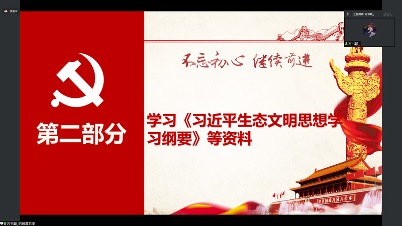会议接着由方书颖同志带领全体党员、预备党员,认真学习《知史爱党守初心,砥砺奋进新作为》的内容。会议指出,党的十八大以来,以习近平同志为核心的党中央把统一战线作为党执政兴国的重要法宝,作出一系列重大决策部署,指明了新时代统一战线的发展方向。广大党员同志要始终坚持党的集中统一领导,不断构建大统战工作格局,始终坚持思想引领,不断巩固团结奋斗的政治基础,始终坚持服务中心大局,不断凝聚最广泛的力量,始终坚持守正创新,不断改进工作方法。会议还学习了《习近平生态文明思想学习纲要》等材料,纲要指出,习近平生态文明思想是习近平新时代中国特色社会主义思想的重要组成部分,具有重大政治意义、理论意义、历史意义、实践意义、世界意义。习近平总书记在《论党的青年工作》提到,青年兴则国家兴,青年强则国家强,中华民族伟大复兴的中国梦终将在一代代青年的接力奋斗中变为现实。最后全体党员学习了习近平总书记关于师德师风重要论述,指出构建高质量教育体系、建设教育强国,必须加强师德师风建设,着力打造一支政治素质过硬、业务能力精湛和育人水平高超的优秀教师队伍。