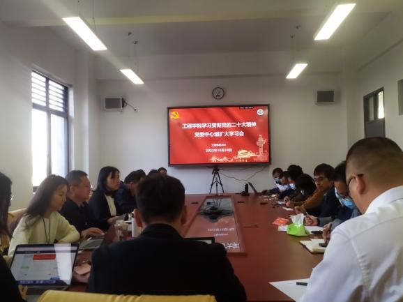 党委副书记、院长胡庆松表示,要认真学习贯彻党的二十大报告精神,增强“四个意识”,坚定“四个自信”做到“两个维护”,面对学院新时代的改革发展,我们更要提升“预见性”与“预判性”;围绕报告中的科教兴国战略所提出的“科技是第一生产力,创新是第一动力”的概念,胡院长希望学院在新时代新征程上,强化教、学、科联动、产教融合、科教融汇协同育人路径,认真分析学院在发展中的重点、难点、特点,形成符合学院发展目标的运行机制,为支撑学校双一流建设、服务地方产业经济和人才培养等各方面事业发展保驾护航。