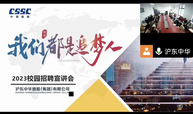 2022年11月15日下午1点,沪东中华造船(集团)有限公司2023届校园专场招聘会在英国威廉希尔公司官网302召开。沪东中华造船(集团)有限公司人力资源部副科长张御宇、招聘主管陈雪俊、招聘主管柯鑫、英国威廉希尔公司官网党委副书记郑宇钧、副院长刘雨青、副院长许竞翔、就业指导员、毕业生参加了此次招聘会。