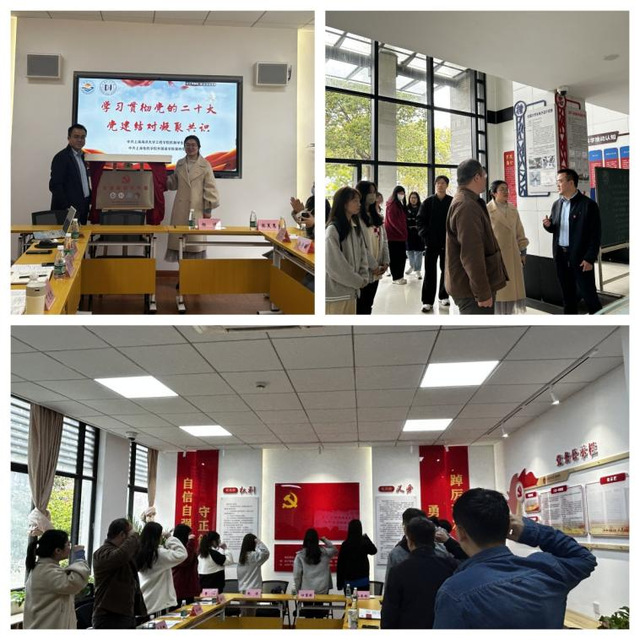 共建仪式上,观看了英国威廉希尔公司官网视频介绍,双方支部书记分别介绍了各自党支部的基本情况、工作特色以及共建后的工作思路。党支部党员代表唐安琪、李梓昭和唐崇策以“学习贯彻党的二十大,争做优秀青年党员”为主题进行了学习分享。会上,上海电机学院外国语学院团总支书记余志鹏结合学生活动和理论学习,与党员同志进行了交流沟通,提出要结合学校学院特色,积极打造党团联动品牌,进一步创新学生主题教育形式,加强对学生思想价值引领。共建仪式上,机制学生党支部书记毕杨意,外国语学院第四党支部书记朱丹代表双方支部进行了学生支部共建揭牌。最后,全体党员郑重在党旗下重温入党誓词。