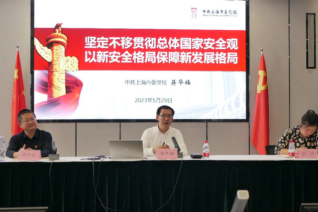 中共上海市委党校蒋华福教授作了“坚定不移贯彻总体国家安全观,以新安全格局保障新发展格局”主题教育专题辅导报告。蒋华福从国际格局中发生深刻调整世界仍处动荡变革期、中国崛起中原来的传统安全问题变得更加复杂、非传统安全问题对国家安全构成长期威胁挑战三个方面阐述贯彻总体国家安全观。他提到国家安全是民族复兴的根基,社会稳定是国家强盛的前提。必须坚定不移贯彻总体国家安全观,把维护国家安全贯穿党和国家工作各方面全过程,以新安全格局保障新发展格局,确保国家安全和社会稳定。