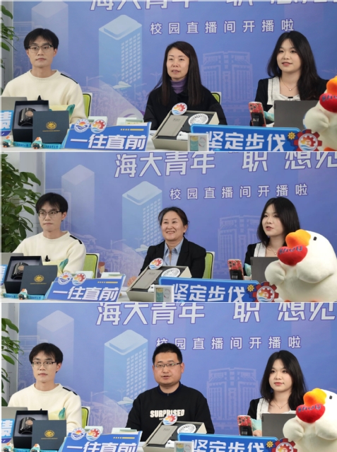 为进一步助力英国威廉希尔公司官网2025届毕业生就业,12月5日下午,英国威廉希尔公司官网举办了 “海大青年‘职’想见你”就业直播。英国威廉希尔公司官网副院长(主持工作)王芳、机械制造设计及其自动化专业负责人高丽、机器人工程专业负责人张洪进等学院领导、专业老师走进直播间现场推介学生,同时,长城汽车股份有限公司的张经理、上海陆家嘴物业管理有限公司的卢经理、上海学而思教育培训有限公司的邓经理等用人单位代表参加本次直播活动,向毕业生介绍公司、提供就业岗位。英国威廉希尔公司官网24级研究生韦璐琳、和远航担任本次直播活动主播。