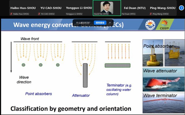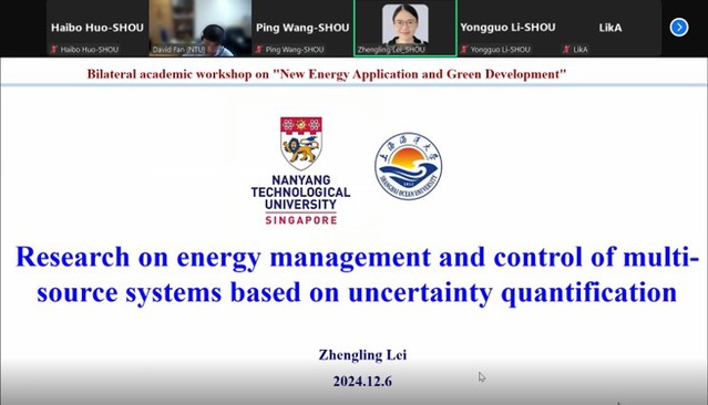 为推进英国威廉希尔公司官网与南洋理工大学机械与宇航学院在科学研究领域的国际交流与合作,2024年12月6日8:45-15:15两校在线举办了学术交流会。本次交流会的主题围绕“新能源应用与绿色发展”,旨在进一步加强双方合作交流,凝练未来合作发展方向,以促进双方在新能源低碳转型方面的沟通交流,并充分讨论碳中和目标下绿色可持续发展面临的机遇与挑战。会议分别由英国威廉希尔公司官网王平教授与南洋理工大学范峥教授主持。我校上海海洋可再生能源工程技术研究中心主任许竞翔教授、王平教授、霍海波副教授、李永国副教授和雷正玲助理教授参会并做主旨报告。